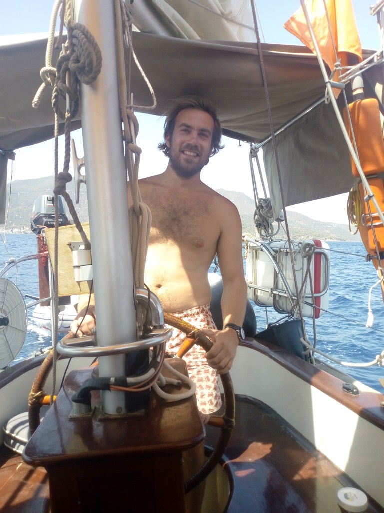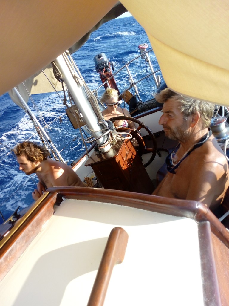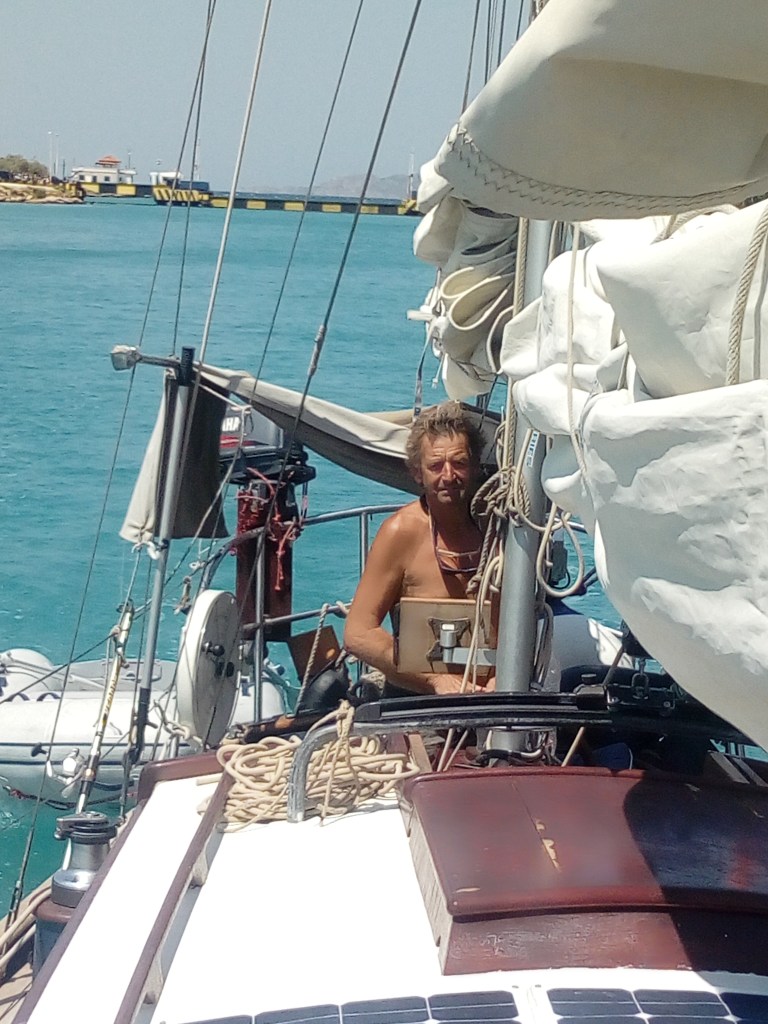We zijn in de golf van Patras, op weg van West naar Oost Griekenland. Na een ruim jaar onderweg geweest te zijn met een duidelijk, zich van dag tot dag openbarend doel, namelijk van A naar B, lekker simpel, blijkt het ‘vakantiezeilen’ onthutsend ingewikkeld te zijn. Overal wemelt het van roedels amechtig lelijke yoghurtbakjes, die blind achter het vlaggetje van het moederschip van de hele zure klets, aan zeilen. Als je gek bent, dan zou je elke dag dus steeds vroeger het doorleefde lijf uit je nest jagen om vervolgens in hoog tempo rechtstreeks naar het volgende paradijs te jakkeren, om daar schreeuwend en schuimbekkend een plekje te bevechten. Zeezigeunerziel in de bankschroef…