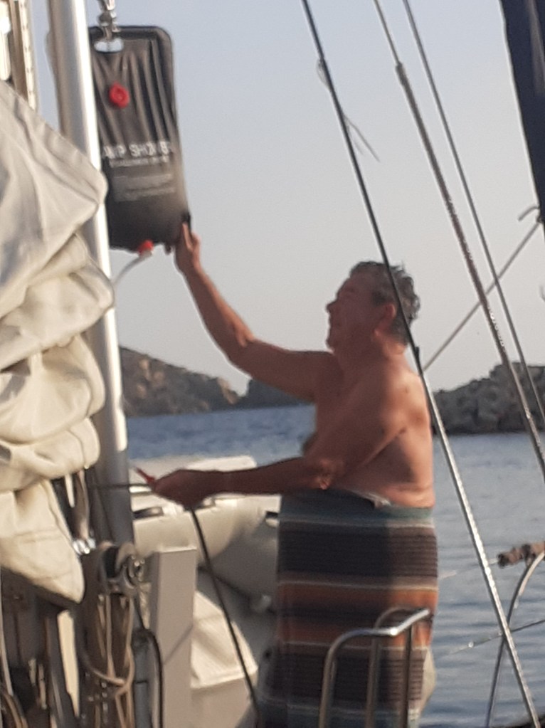 Sinds we op Formentera de hoofdprijs mochten betalen voor het vullen van de drinkwatertank, zijn we vol overtuiging overgestapt op de zoutwaterafwas. We hebben nu ontdekt dat: