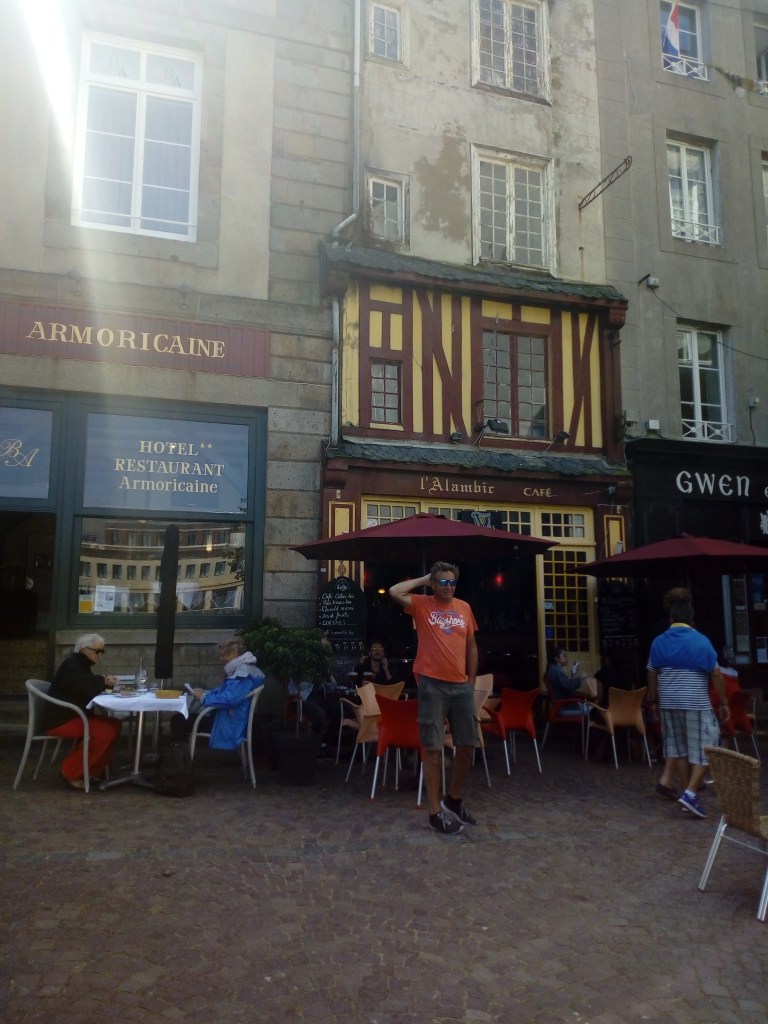 Dus uitgeweken naar Cherbourg waar Hans en Björn op verkenning gaan. Met de bijboot. Die we afgetankt hebben met bromfietsbrandstof bij een tankstation. Met een mengverhouding van 1:50. Daarmee halen zij de díchtstbijzijnde oever, waarna ook dit stukje techniek de geest geeft. Want een probleem komt nooit alleen; een probleem komt met z’n drieën! En já hoor: marinebasis. Of we wel even héél snel op willen hoepelen. Lastig… Tenzij de heer oberstuurmanführer zo goed zou willen zijn om ons van een mengverhouding van 1:100 te voorzien. Pas de problème. Bien sûr, maintenant. Opgelost!